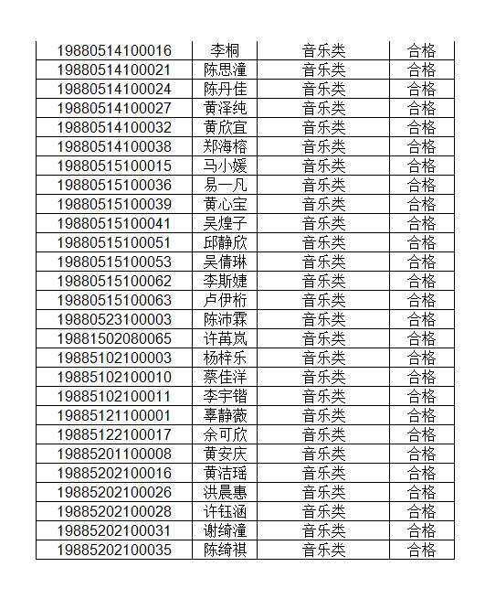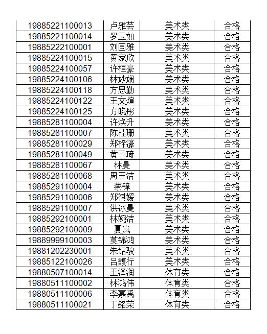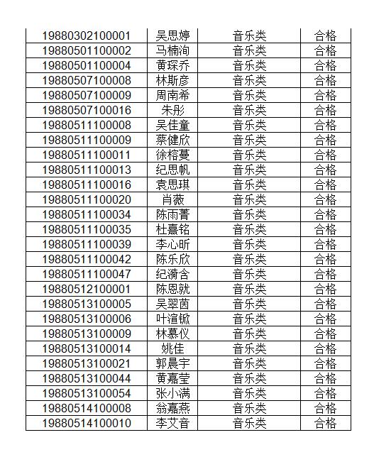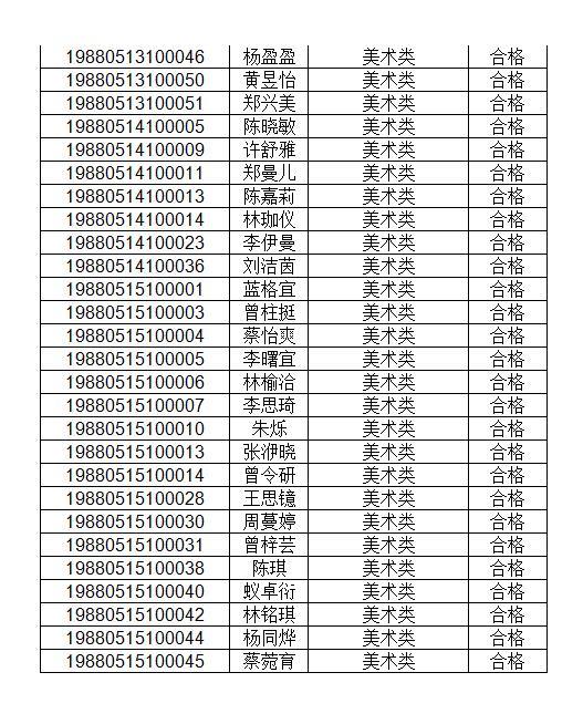 附件:获得术科考试合格考生名单