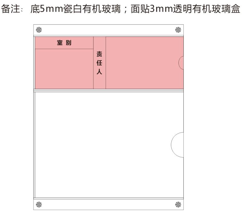 制作内容包括:(1)制作有机玻璃信息栏,采用底板5mm瓷白板,上面贴透明有机玻璃盒 30.8×35;(2)电脑纸印制标题,详细按附图规格及数量。