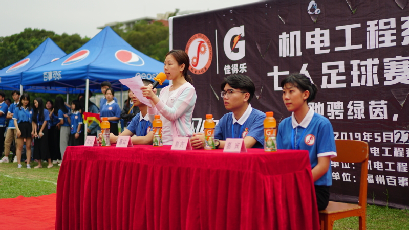 2019年5月22日下午,由机电工程系团总支主办,机电工程系学生科、机电工程系团总支学生分会承办,福州百事可乐饮料公司赞助的第十届“驰骋绿茵,热血足球”七人足球比赛总决赛及闭幕式在院本部标准运动场隆重举行。本次活动由毕业生联络部副部长钟家来和干事蔡银心主持,出席本次足球赛闭幕式的嘉宾有机电工程系学生科科长曾少慧、机电工程系第十六届团总支学生分会主席邹柳栋、第一副书记丘子杰、体育部部长罗嘉燕和17、18级参赛队伍。