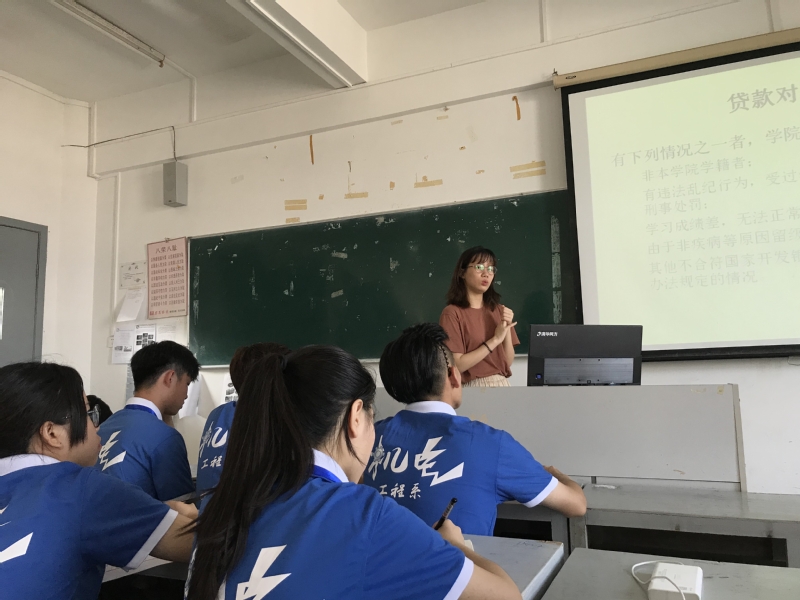 为使办理高校助学贷款和生源地贷款的同学更好的了解高校贷款助学政策,由机电工程系学生科主办的“国家助学贷款政策校园专场”宣讲会,于5月16日下午在教二区D402隆重举行。出席本次宣讲会的有机电工程系学生科辅导员阮艺冰老师和17、18级办理高校助学贷款和生源地贷款的同学。