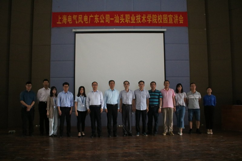 2019年5月23日下午,上海电气风电集团总监携子公司领导一行在学院学术报告厅举办校企合作宣讲会。出席本次宣讲会的领导嘉宾有上海电气风电集团人力资源部总监赵增樑、人力资源部主管计佳玮,上海电气风电广东有限公司总经理王全景、行政部部长杨宝红;学院副院长翁泽群、教务处副处长刘钦创、机电工程系副主任陈明忠、系办公室主任郑遐、电子教研室主任陈国雄、机械教研主任谢志刚、辅导员阮艺冰和机电工程系2017级学生。宣讲会由机电工程系学生科科长曾少慧主持。