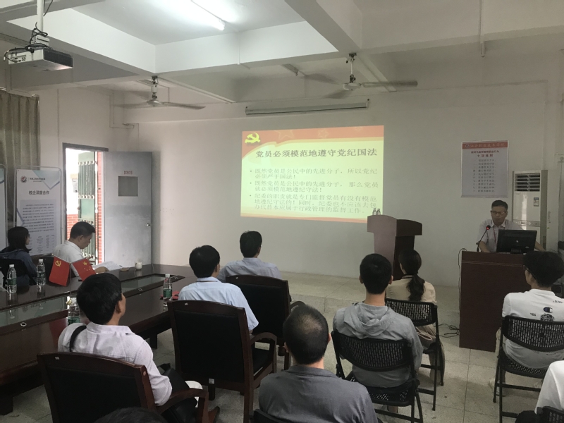 根据学院“不忘初心 、牢记使命”主题教育活动的工作安排,10月29日下午,机电工程系在系党建活动室举办学院领导讲党课活动,学院监察室夏晓忠处长带领监察室全体党员和机电工程系党总支全体师生党员一起聆听学院党委委员、纪委书记王茂春同志的党课。