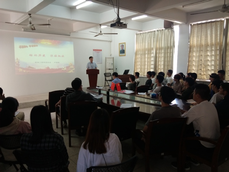近日,机电工程系党总支结合“不忘初心、牢记使命”主题教育活动,以支部书记讲党课的形式,开展了“主题党日”活动,机电工程系党总支全体党员和入党积极分子参加了本次活动。
