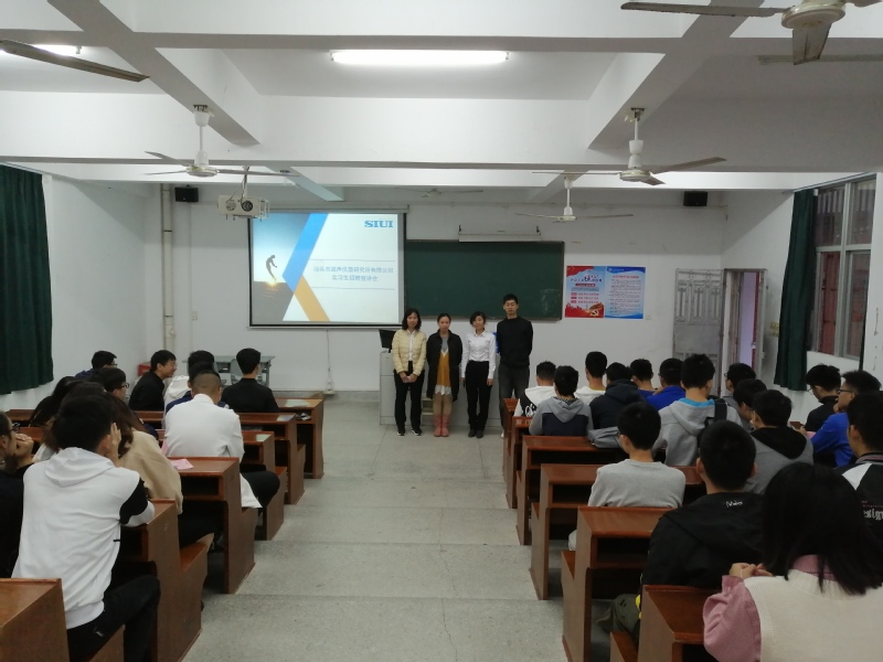 12月3日,汕头恒丰机电安装工程有限公司张明总经理一行到我系与部分2019届毕业生就“新时代大学生的就业观”为题进行交流,张总以其公司业务为例,与大家探讨了机电类毕业生毕业以后如何进行职业规划,实现自已的人生价值。12月4日,汕头市超声仪器研究所有限公司到我系教三区110教室举办了实习生招聘宣讲会,我系2019届应用电子技术、光伏电子工程及机电一体化技术专业的学生参加了交流会,通过汕头市超声仪器研究所有限公司的介绍,大家初步了解了企业的工作待遇、工作环境、实习前景、未来工作发展方向等方面的内容,使同学们明确自身实习目标。