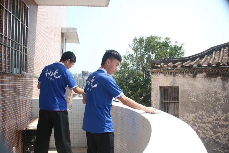 志愿者们抵达东湖村老人活动中心后都怀着饱满的热情,分工协作,各司其职。一边,部分志愿者分别对老人活动中心室内和室外进行大扫除,为活动中心营造整洁,温馨的生活氛围。