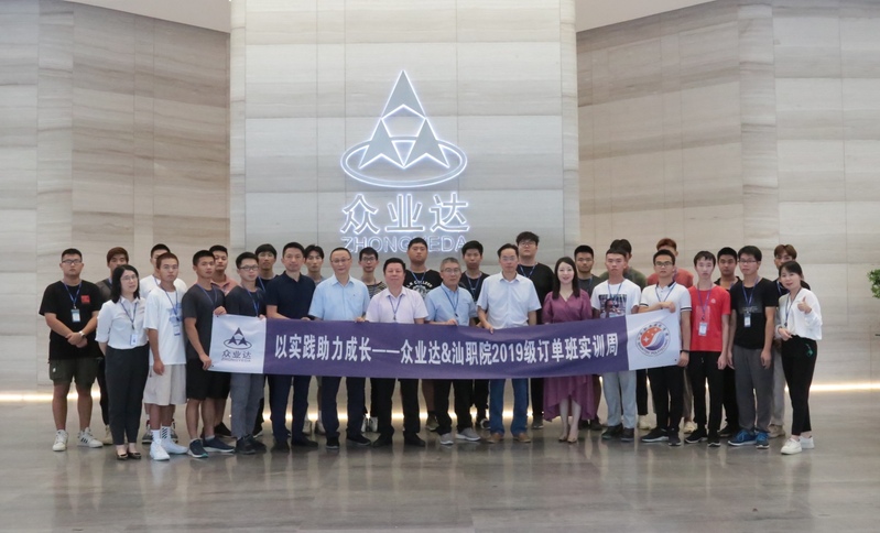 2021年6月21日下午,教务处副处长黄健新,机电工程系主任陈明忠、系学生科科长陈玮苹、机械教研室主任方迪成等一行4人前往众业达电气股份有限公司汕头总部调研,看望了正在企业岗前培训的订单班学生并举行大学生校外实践教学基地挂牌仪式。受到众业达电气股份有限公司两位常务副总经理陈瑞钿、杨松的热烈欢迎。
