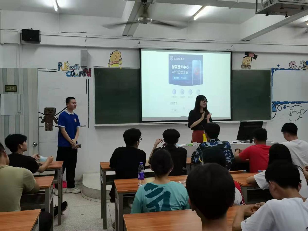 2.于9月14日晚上,学生科辅导员、新生代理班主任积极开展新生防诈骗主题班会,同时要求每位新生必须下载安装并开启国家反诈骗中心app,强化新生的财产安全意识: