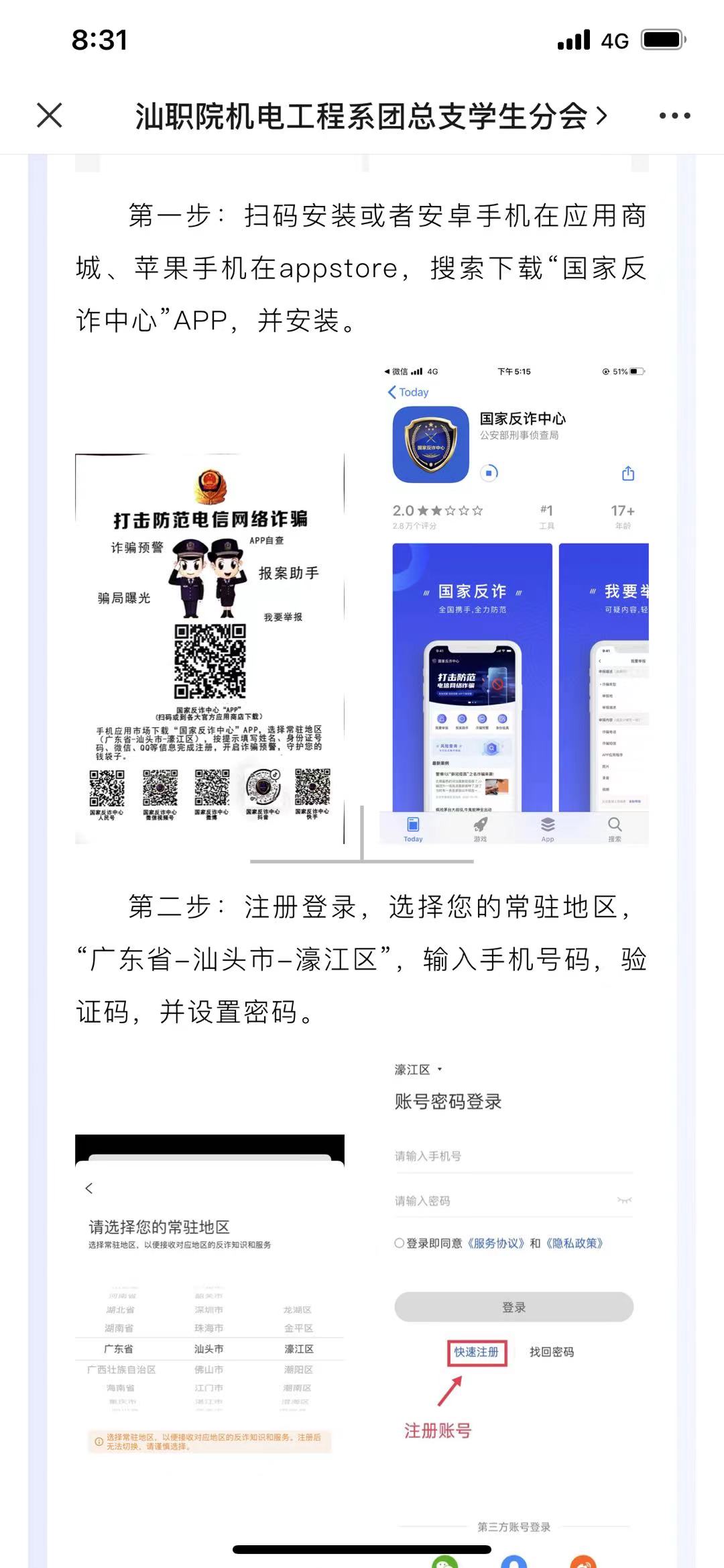 利用新媒体矩阵,在学系微信公众号发布关于在学生中开展防诈骗宣传教育推文,引导学生下载安装并开启国家反诈骗中心app,同时以目前学生周边常见的诈骗案例,提醒学生要时刻保持警惕性: