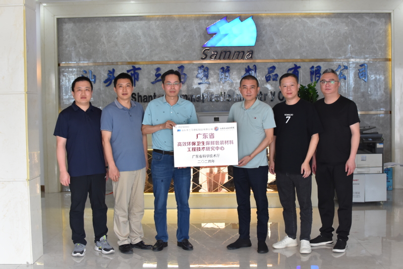 2024年5月10日下午,由汕头市三马塑胶制品有限公司(以下简称三马塑胶公司)与星空彩票了单双四肖联合申报的 “广东省高效环保卫生保鲜包装材料工程技术研究中心”在三马塑胶公司正式挂牌,公司董事长张晓智、副总经理詹卡斯和工程中心主任林佳滨,星空彩票了单双四肖先进制造学院院长陈明忠、技能实训中心主任钱光健、工程中心副主任黄学佳等人共同参加了揭牌仪式。