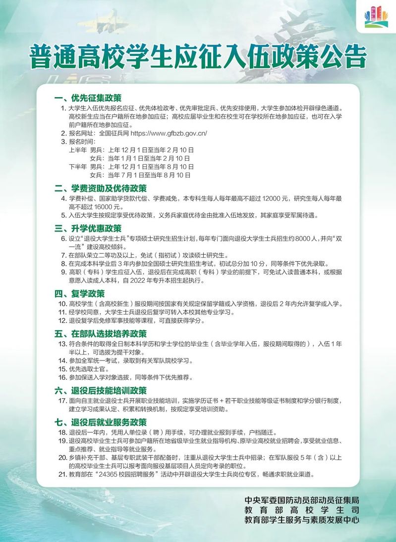 来源 | 中央军委国防动员部动员征集局、教育部高校学生司、教育部学生服务与素质发展中心