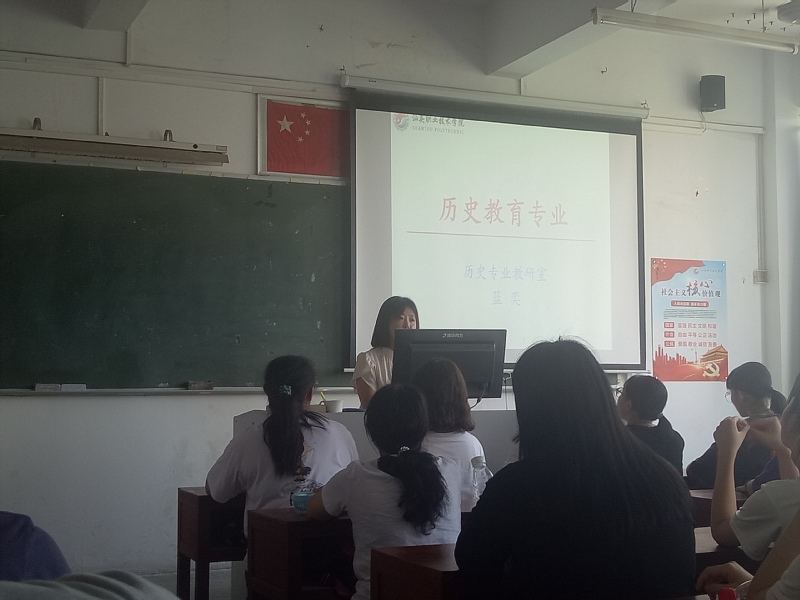 过后,19级历史教育专业的全体新生在教室听取了专业教研室主任蓝奕对本专业的专业介绍。