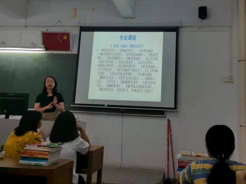 2019年9月18日上午,东墩校区19级全体新生参加了新生开学典礼。2019年9月19日下午三点,杨映红主任在东墩校区3404教室为1901文秘班的同学作专业介绍。