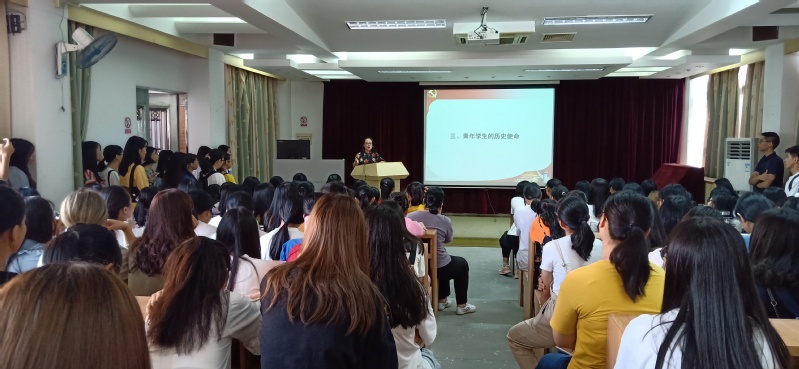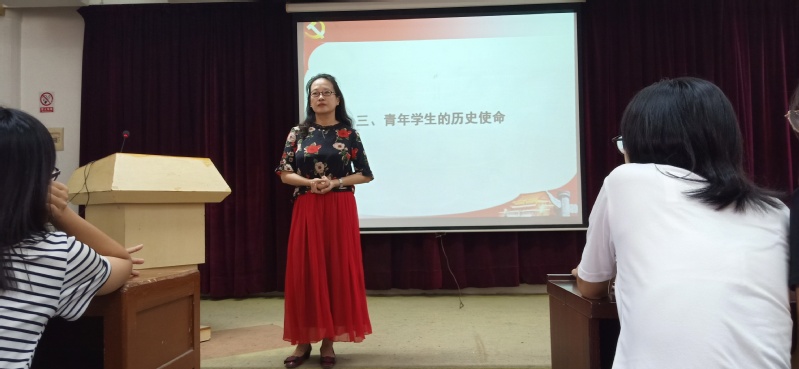 人文社科系副主任陈泽芳副教授作了主题为《青年学生的历史使命——贯彻落实习近平新时代中国特色社会主义思想》的“思政第一课”。她从当代大学生应有的人生追求、加入中国共产党是当代大学生的最好政治选择、时代赋予当代大学生的历史使命是服务人民做好中国特色社会主义事业的接班人等三个方面告诉学生,中国民族的伟大的光明前景需要青年的奋力开创。