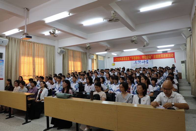 为深入开展“不忘初心、牢记使命”主题教育,不断推动我系主题教育走深走实,10月24日下午,人文社科系党总支副书记陈泽芳带领总支党员到汕头市下蓬中学开展了教师党员送教党日主题活动,下蓬中学两百多名师生参加了此次活动。