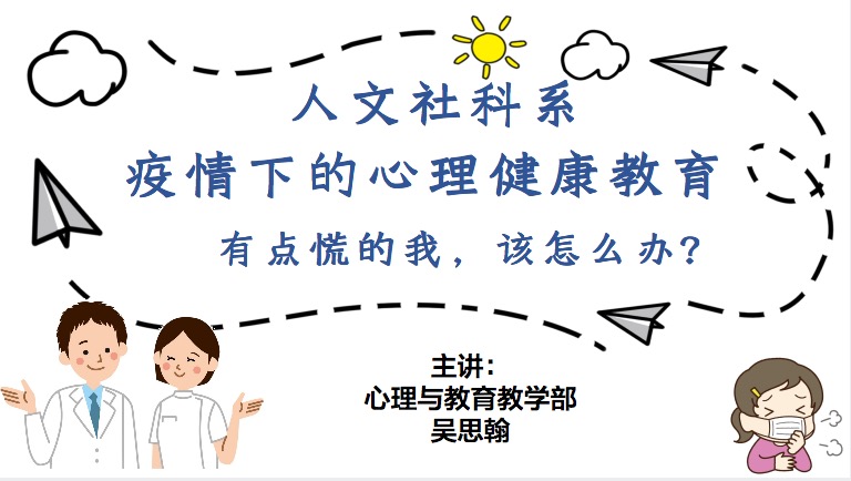 突如其来的新冠肺炎疫情,带给人们的不仅仅是生活不便、身体健康受到威胁,更会让人产生恐慌焦虑、孤独失落等心理危机应激反应。为了做好人文学子心灵的守护者,人文社科系于4月15日在腾讯课堂网络平台开课,由心理与教育教学部的吴思翰老师给同学们上了一堂全力抗疫,迎接春暖花开的心理支持课——“疫情下的心理健康教育”,增强人文社科系学生抗疫心理素质,提高学生心理保健意识和心理健康水平,促使学生科学地认识、了解心理健康知识,树立正确的心理健康理念。此次线上讲座可是“干货”满满: