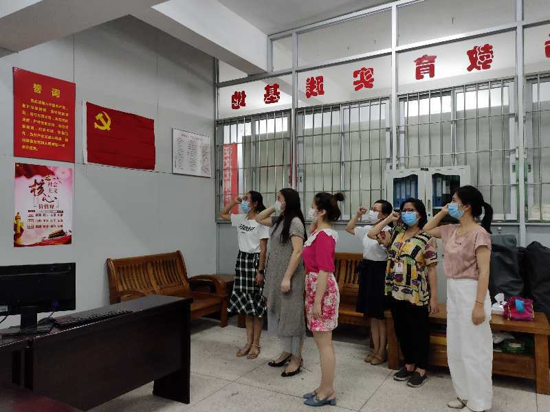 在这特殊的时期,与会的党员们都戴着口罩,间隔一米就坐,与以往的党日活动相比,本次会场要显得更为简单朴素,但现场的气氛却不减热烈和庄重。活动的第一个环节,党支部书记伍娜同志带领全体党员为本月过“政治生日”的党员同志们送上“生日祝福”,随后冯旖旎同志作为代表,发表了感言,她表示通过这项活动,再次回望了自己的入党初心,对标先进前辈,更激发了坚持为人民服务的动力,同时进一步强化了身份意识,增强了自身的组织归属感和身份认同感,并再一次表示自己将在教书育人的工作中坚持初心,做好本职工作。