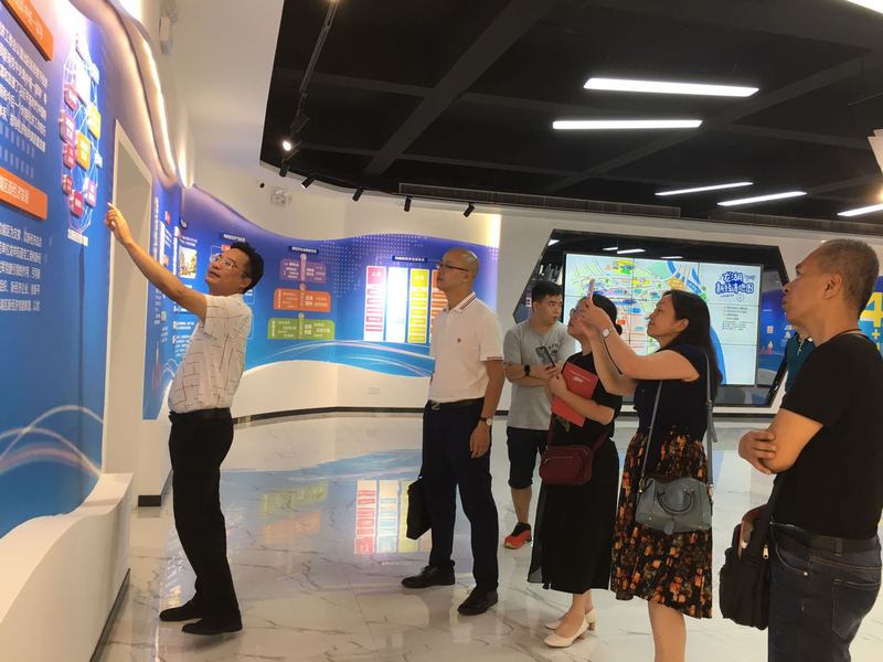 在陈少安书记的带领下,大家先后参观了“幸福加油站”——丹霞党群服务中心和龙湖区新经济党群综合服务中心两个党建项目。前者以社区服务为主线,完善了街道党建脉络,统筹了各类服务资源,设立便民服务、党群活动、党建体验三个功能区域,突出党建引领主题;后者作为广东省首个县区级新经济党群中心,分为“升腾龙湖”、“大美龙湖”和“创新龙湖”三个子馆,展示了龙湖区经济社会发展变革的过去、现在和未来。两个服务中心鲜明的特色和创意,大大开阔了学系党建创新的视野,为学系党建引领、协同创新提供了非常好的思路和借鉴范本。