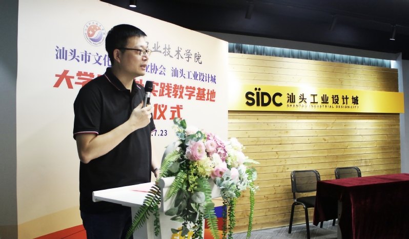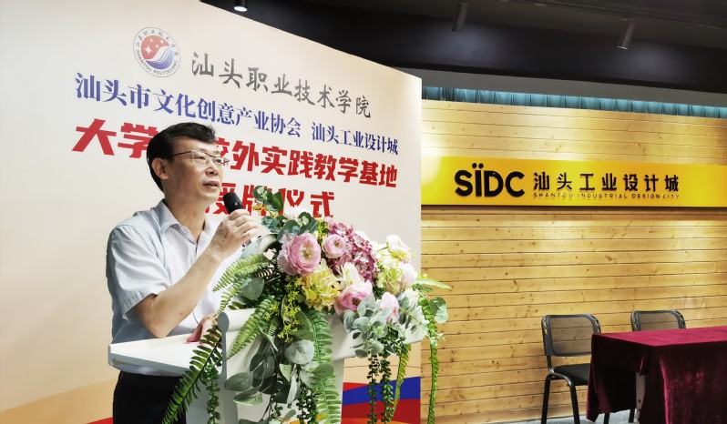 陈庭照副院长首先在致辞中对文创协会和汕头工业设计城倾力支持大学生校外实践教学基地的建设表示感谢,详细阐述了关于实践教学基地的定位和新专业设立的初衷,希望两家合作单位能与校方一起更好地提升人才培养质量,为地方经济发展输送更多高水平的应用型人才。