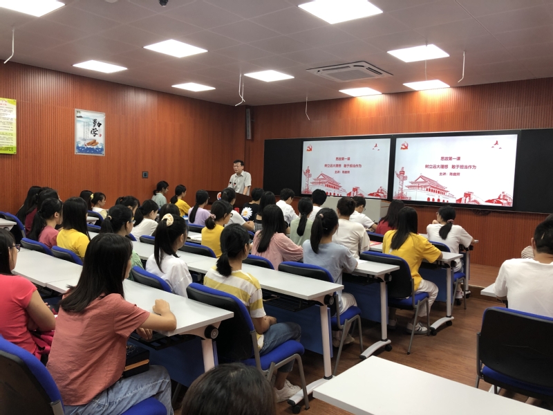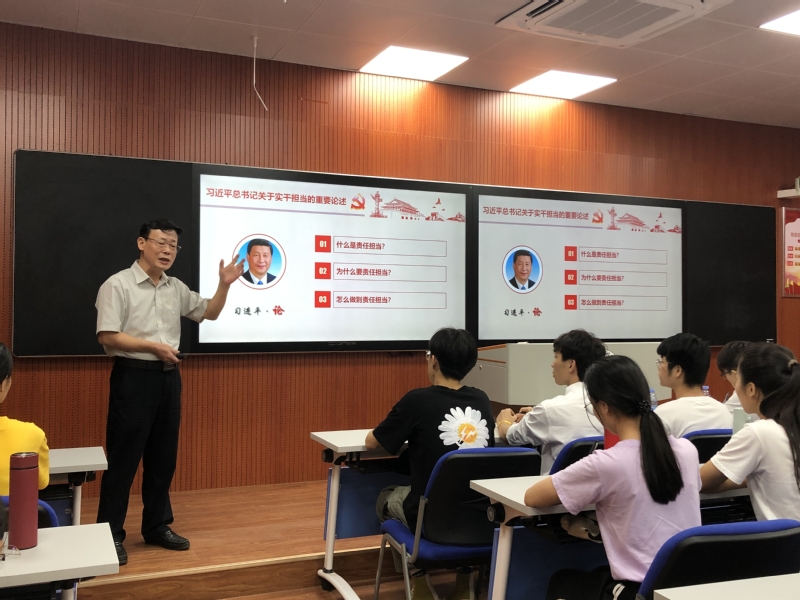 9月24日下午,学院党委委员、副院长、人文社科系党总支书记陈庭照在金园校区录播室以《树立远大理想,敢于担当作为》为题,为人文社科系学生近100名学生开讲2020年秋季学期“思政第一课”。