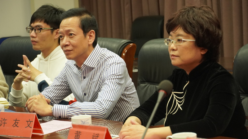 会上,杨映红副主任向两位合作者介绍了人文社科系的情况,以及《潮汕文化传承与发展研究》项目的框架和内涵,对两位合作者一直以来的支持表示感谢。许友文和黄斌分别介绍了“潮汕话”和“潮汕童谣”的非遗项目申报进展和保育计划,以及与汕职院联合开展“创新强校”工程项目的进展情况。与会各方围绕《从零开始学潮语》《童谣里的潮汕》两个节目、师资培训与学生志愿者等内容进行探讨交流,取得良好效果。