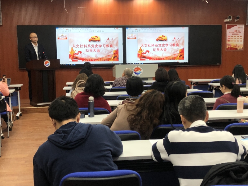 2月28日上午,人文社科系在录播室召开了党史学习教育动员大会。会议由学系党总支专职副书记黄小铭主持,全体教职员工参加。
