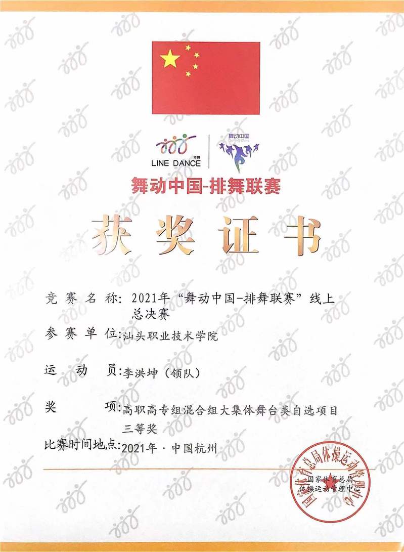 12月20日,由国家体育总局体操运动管理中心、中国蹦床与技巧协会承办的2021年“舞动中国-排舞联赛”线上总决赛,本次赛事来自全国18个省(市、自治区)以及香港和澳门特别行政区,69个城市的338支精英队伍共计5600余人。在此次赛事中我校健美操代表队荣获“高职高专组混合组大集体舞台类自选项目”三等奖。