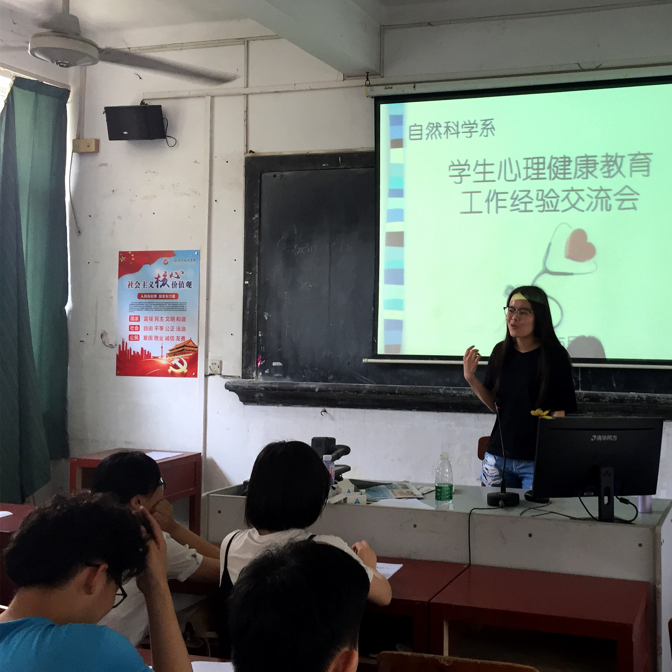2018年5月24日下午在教学楼203室召开心理健康知识宣讲会和开展心理健康教育工作座谈交流活动。学生科辅导员、各年级各班心理委员、系团总支学生会委员参加活动。活动分两部分,一是由余义坤老师和陈郁蕙老师分别进行心理健康知识宣讲。二是进行心理健康教育工作交流活动,多名参会人员做了主题发言,分享自己在心理健康教育工作方面的心得体会,并对今后学系心理健康教育工作提出建议和意见。交流活动结束后向参加人员发放工作用品。