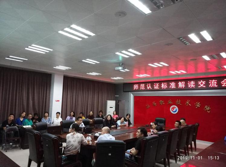 2019年11月1日,学院教务处在金园校区二号楼会议室举行了师范专业认证标准解读交流会,会议由教务处叶蓝天科长主持。按林育青副院长和教务处的要求,数学教研室主任钟发胜老师作了师范认证标准解读报告。钟发胜老师从”我们已完成了什么?别人怎么做?我们准备怎么做?”三个问题出发,介绍了数学教研室的师范认证工作完成情况;学习首都师范大学与南宁师范大学师范认证工作经验基础上,解读了师范认证标准;交流了师范认证工作的思路和师范认证可能面临的困难及解决方案。