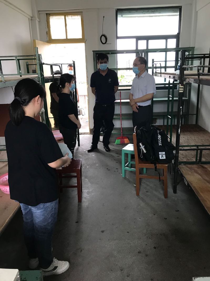王小辉书记在带队检查了进校门程序,食堂开放准备工作、教师值班宿舍后,来到学生宿舍看望返校的志愿者和省赛备赛学生。王书记对志愿者们竖起大拇指,点赞道:你们是优秀的,在学院和同学们需要的时候,主动报名参加志愿工作,为同学服务,感谢你们。王书记在与志愿者拉家常式的谈话中,关心大家的食堂伙食菜式,学习生活情况,志愿者们都表示对食堂伙食满意,会继续努力和学院同进步。在关心省赛备赛的学生时,王书记鼓励大家磨炼过硬技能本领,在省赛上展示我院学子的风采,为学院争光。看望住校学生后,王小辉书记在金园校区召开现场工作会,肯定了自然科学系和金园校区在学生返校工作上做了大量细致的工作,也提出了进一步的要求,确保扎实落实学院党委一贯坚持的“立德树人,一人为本”的教育服务理念。
