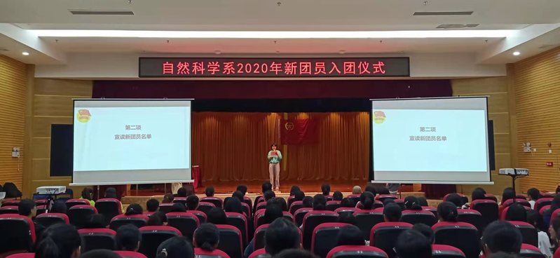 为进一步加强自然科学系基层团组织建设,增强团员身份意识,充分发挥仪式教育的引导作用,自然科学系于11月18号晚在幼师大礼堂举行新团员入团仪式。学院团委书记陈锦莹,系党总支书记、系主任张文腾,系党总支专职副书记李婕,学院团委兼职副书记、系团总支书记林俊宏,初等教育专业教研室主任王熠,以及各班班主任、新团员和团员代表参加了本次仪式。