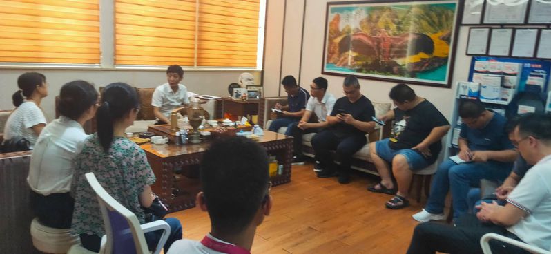 老师们先参观了企业的口腔文化馆、生产车间、直播培训基地和研发检测实验室。随后,与董事长林创有、司马浦副镇长唐大桂和蓝利明、企业服务中心主任谢峰,党政办廖泽莉,汕头青年博士联合会常务副秘书长林赟,就企业技术服务需求和人才培养等方面深度合作进行交流和研讨,确定了具体合作事项:第一,在科研方面可以发挥高校智库与博士联合会的优势对口腔产品的机械性能和牙膏配方两方面进行升级;第二,在人才培养方面可以与该企业通过建立校外实训基地、聘任企业导师、学徒制和订单班等方式为企业培养人才;第三,校企政联合推动,开展大学生创新创业活动,提高人才培养质量和促进口腔行业经济发展。