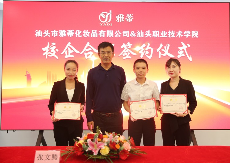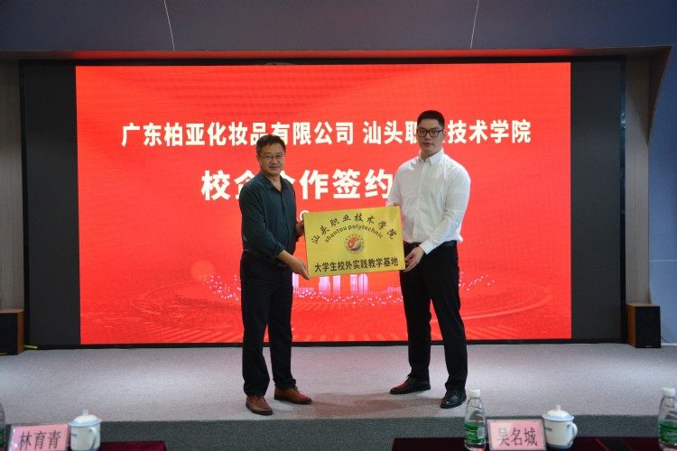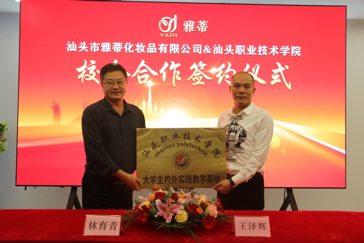 为了推进产教研深度融合,服务地方经济,为粤东区培养复合型创新型化妆品技术人才,2021年10月22日,由学院林育青副院长带队,自然科学系、技能实训中心等相关人员一行,分别到广东柏亚化妆品有限公司和汕头市雅蒂化妆品有限公司,举行大学生校外实践教学基地签约和授牌仪式。