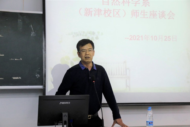 张文腾书记指出,通过开展学风考风建设和学生行为规范教育,形成全员全过程全方位育人格局,引导学生严格遵守各项规章制度和行为规范,培养德智体美劳全面发展的社会主义建设者和接班人。通过分享个人学习经验,张文腾主任强调,科学的方法和充足的训练对于数学专业学习的提升有重要作用。他鼓励同学们,要着眼于自身、放眼未来,大学三年,要使自己的学习能力、管理能力、综合能力获得真正提升。会后还安排了交流环节。老师们分专业、分版块对同学们教学安排、教育实习、就业创业等方面的问题一一解答。现场师生交流融洽,氛围热烈,新津校区自然科学系学反响强烈,加强了同学们对学系的认同感和归属感。